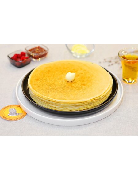 Один килограмм сытных и вкусных, домашних блинов. 16 - 17 блинов на порцию. Идеальны для заворачивания начинок, благодаря большому диаметру (24 см). Наши блины всегда свежие и сделаны в день продажи