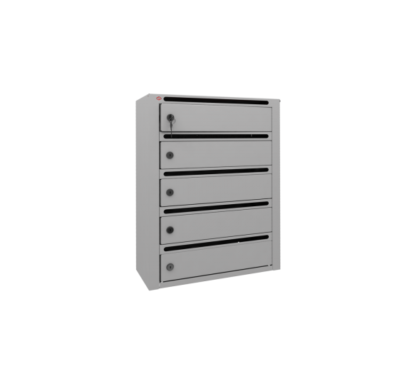 Габариты: 380х529х180 Покрытие: Полимерно-порошковое Материал: Сталь 0,6 мм (Дверки сталь 1,0 мм) Cекций: 5 Глубокий вертикальный 5-и секционный почтовый ящик усиленной конструкции серии «Гарант» для подъездов многоквартирных домов с прямым горизонтальным дном имеет усиленную конструкцию корпуса и выполнен из холоднокатанной стали. Дверцы почтового ящика имеют толщину металла 1 мм. Открытие дверок производится слева направо. Конструкция почтового ящика предусматривает возможность перевешивания дверок на противоположную сторону (справа налево). Корреспонденция располагается в секции горизонтально.
