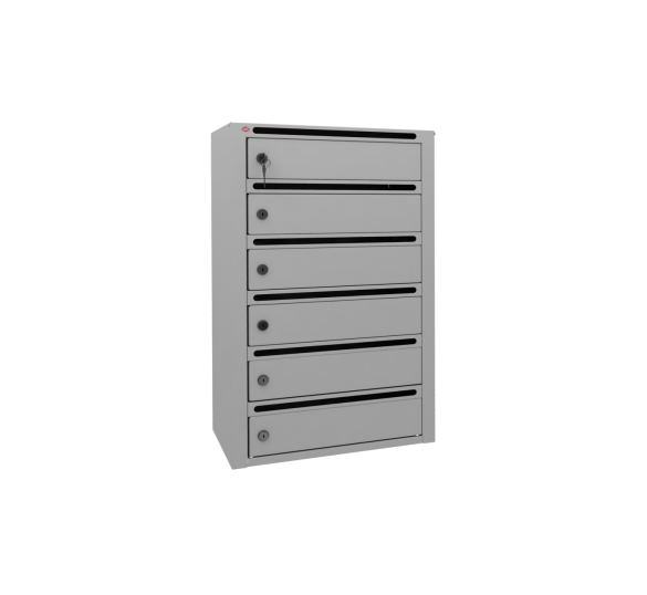 Глубокий вертикальный 6-и секционный почтовый ящик усиленной конструкции серии «Гарант» для подъездов многоквартирных домов с прямым горизонтальным дном имеет усиленную конструкцию корпуса и выполнен из холоднокатанной стали. Дверцы почтового ящика имеют толщину металла 1 мм. Открытие дверок производится слева направо. Конструкция почтового ящика предусматривает возможность перевешивания дверок на противоположную сторону (справа налево). Корреспонденция располагается в секции горизонтально. Габариты: 380х631х180 Покрытие: Полимерно-порошковое Материал: Сталь 0,6 мм (Дверки сталь 1,0 мм) Cекций: 6