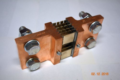 75ШИП1(75ШИП2) 2кА - это стационарный измерительный шунт на постоянный ток, который используется для расширения диапазона измерений приборов постоянного тока. Он имеет номинальное падение напряжения 75 мВ и рассчитан на номинальный ток 2000 Ампер. Шунты выполнены в виде пластин или стержней из манганина, впаянных твердым припоем в наконечники из латуни или меди. Наконечники имеют резьбовые отверстия для потенциальных зажимов (винтов) и отверстия для токоведущих зажимов (болтов).
