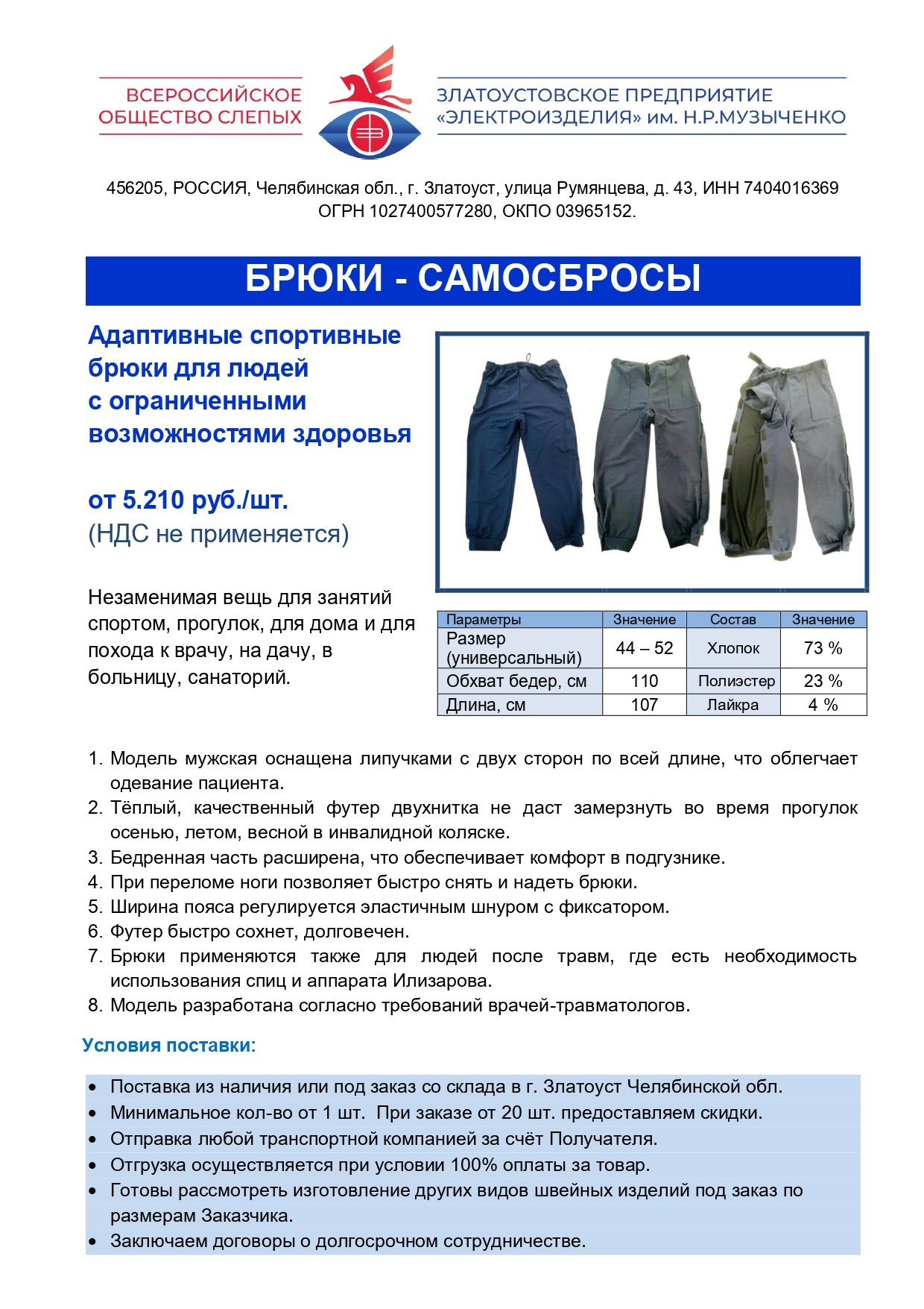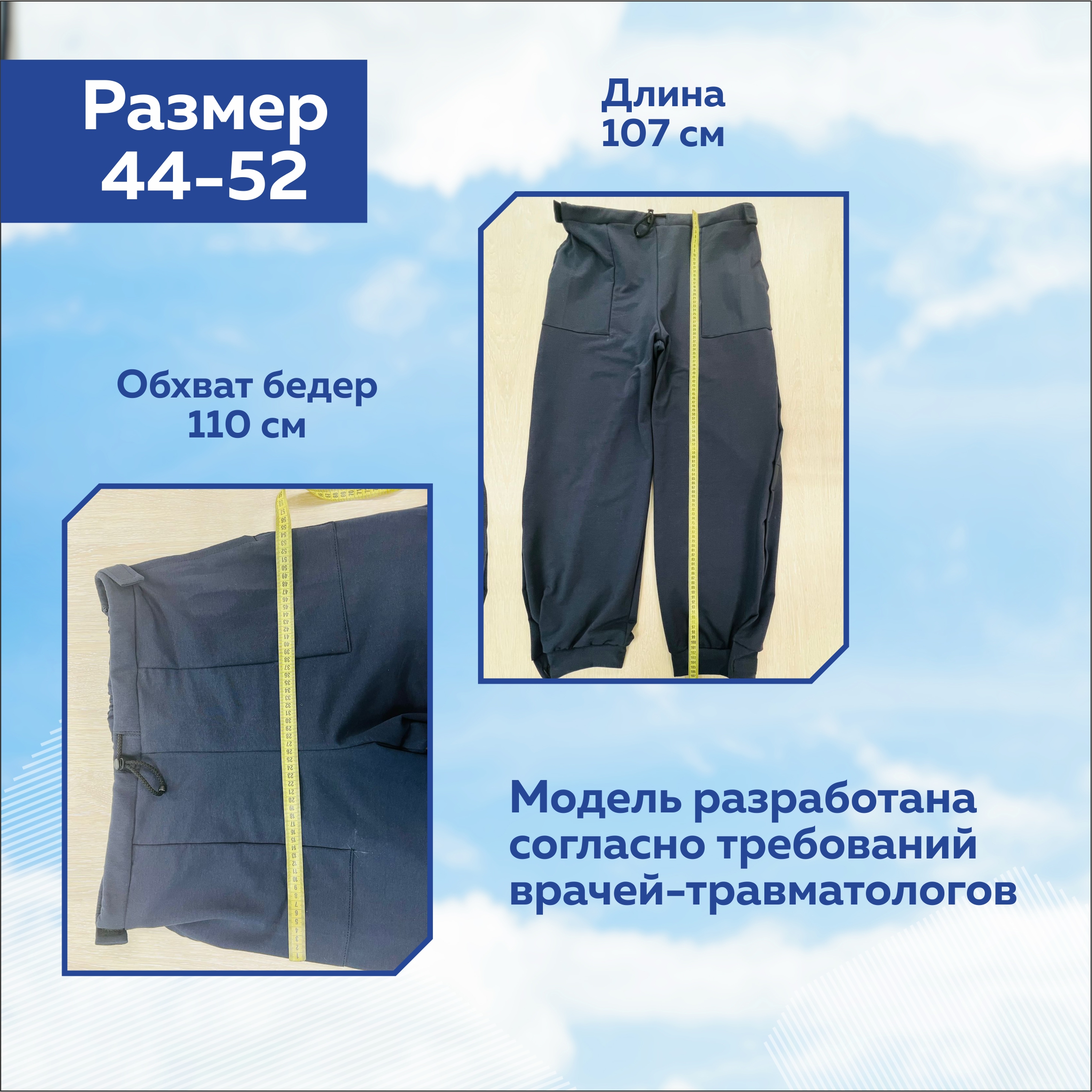 7. Брюки применяются также для людей после травм, где есть необходимость использования спиц и аппарата Илизарова.