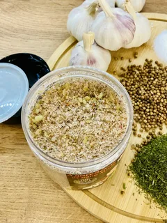 Состав: каменная пищевая соль, свежий чеснок, семена кориандра, паприка.