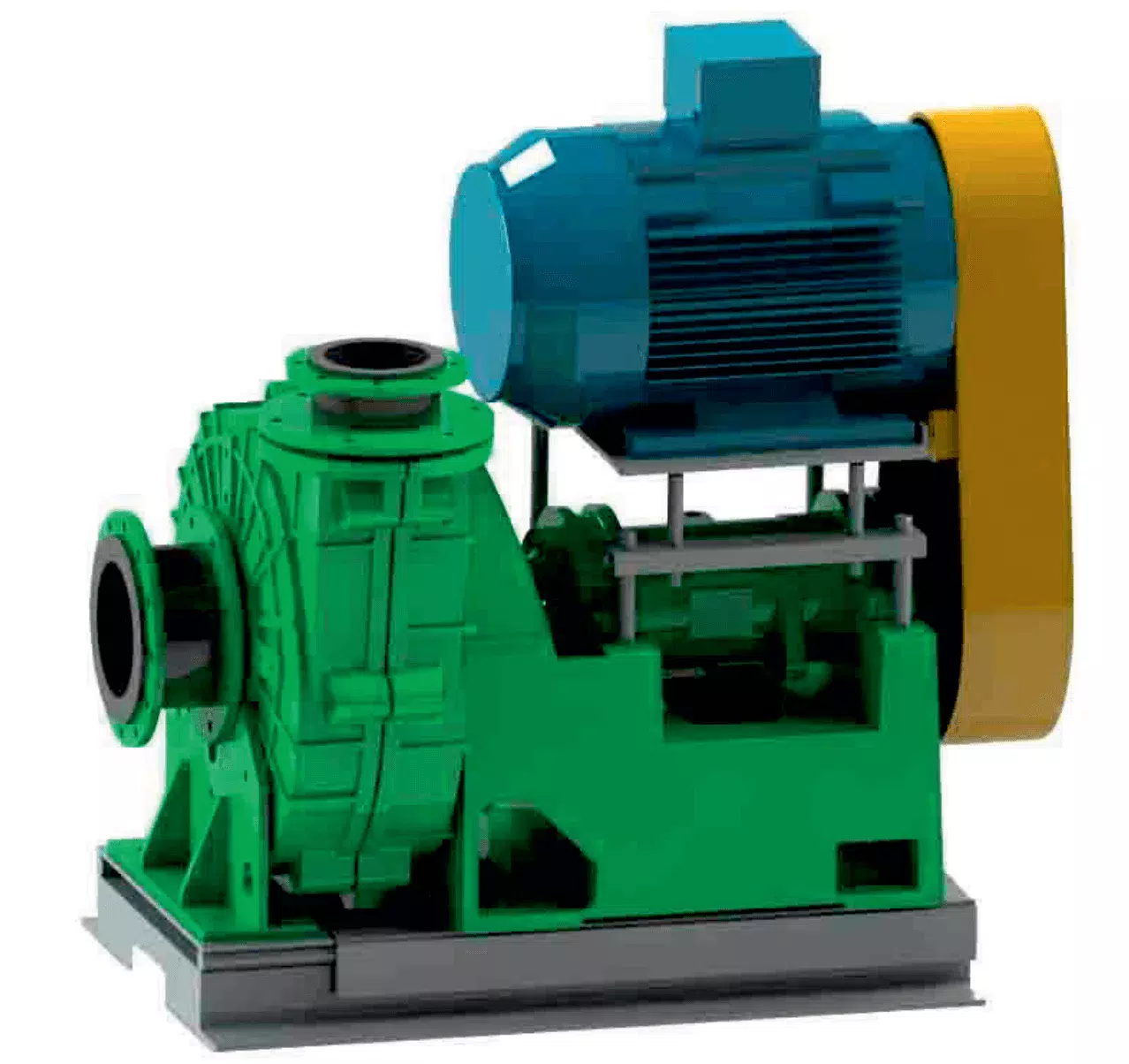 Горизонтальный электронасосный агрегат с центробежным одноступенчатым консольным насосом (соединенным с эл.двигателем через упругую муфту или клиноременную передачу) предназначен для перекачивания продуктов обогащения руд горных производств и других абразивных гидросмесей с рН от 6 до 12, плотностью до 1900 кг/куб.м.,объемной концентрацией твердых включений до 30% с максимальным размером до 6 мм, тем-рой от 5 до 60 Гр.С.