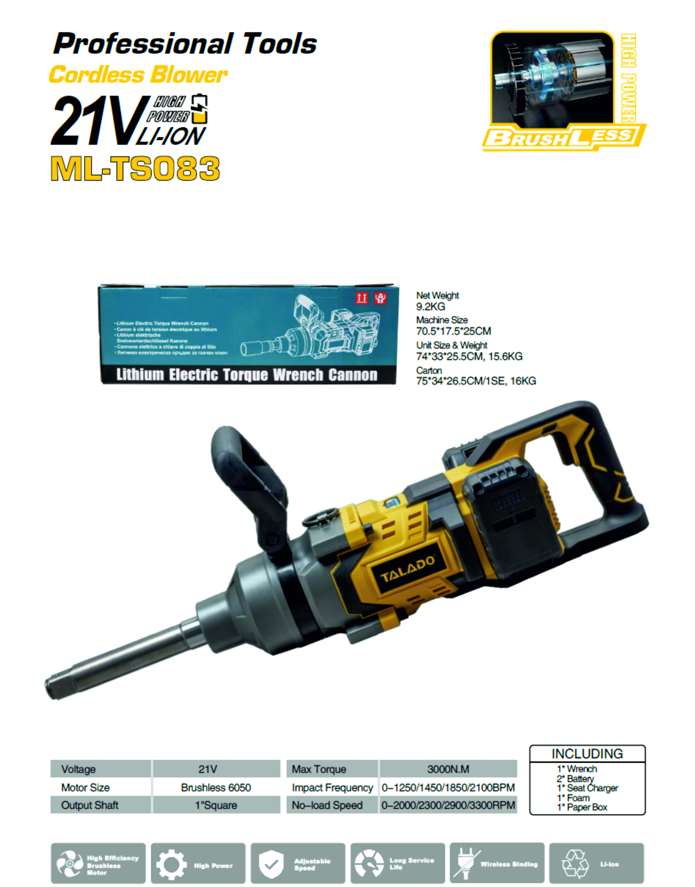 Аккумуляторный гайковерт TALADO ML-TS083 (3000 Н·м) — Мощь грузового шиномонтажа в ваших руках!