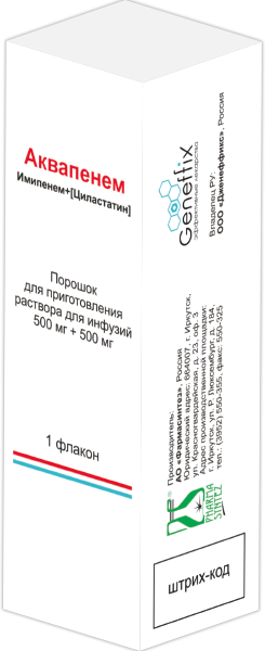 Аквапенем - это комбинированный антибактериальный препарат широкого спектра действия из группы карбапенемов. Применяется для лечения тяжелых бактериальных инфекций (в т.ч. внутрибольничных), устойчивых к другим антибиотикам, благодаря комбинации имипенема и циластатина. Поставляется в виде порошка для приготовления инфузионных растворов.