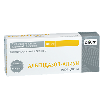 АЛБЕНДАЗОЛ-АЛИУМ - это синтетический противогельминтный (антипаразитарный) препарат широкого спектра действия. Он применяется для лечения кишечных гельминтозов (аскаридоз, энтеробиоз, лямблиоз и др.) и некоторых личиночных форм цестод. Показан взрослым и детям старше 3 лет. Поставляется в виде таблеток, покрытых пленочной оболочкой, по 400 мг, обычно по 1 или 3 штуки в упаковке.