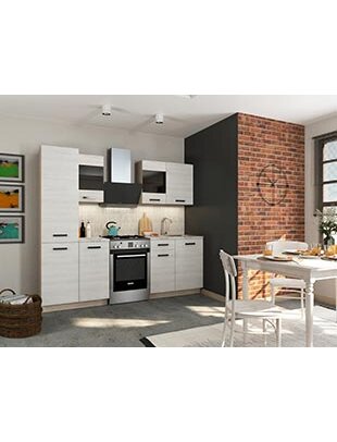 Кромка: ПВХ 0,4 мм Ручки: ПВХ (пластик) 128 мм, цвет: чёрный глянец Стекло: тонированное (Серый) Цоколь: ЛДСП с креплением Опоры: регулируемые ПВХ (пластик) Направляющие: Роликовые Петли: металл (Уралплит) Посудосушитель в комплект не входит