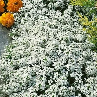Алиссум Снежный ковер 0,3гр миниатюрное растение с мелкими цветками с медовым запахом. Растение невысокое, до 15 см. Образует плотный, стелющийся ковёр белого цвета. Листья узкие, ланцетные. Цветет с июня до осени. Для непрерывного цветения периодически удаляют увядшие цветы и плоды (если не нужны семена). Используют для обрамления клумб, балконных ящиков, на каменистых горках, рокариях, для посадки между плитками дорожек. Агротехника. Растение холодостойкое. Предпочитает хорошо дренированные, легкие почвы и солнечное место. Размножают посевом семян в грунт в начале мая или под зиму. При температуре почвы +18°С всходы появляются на 8-14 день. Всходы прореживают, выдерживая расстояние между растениями 8-10 см.