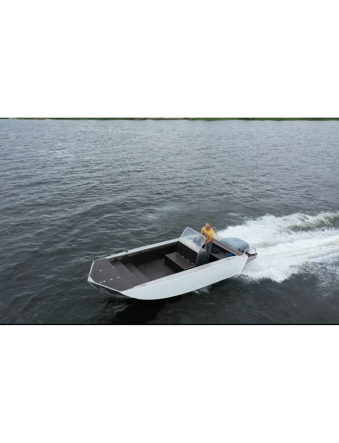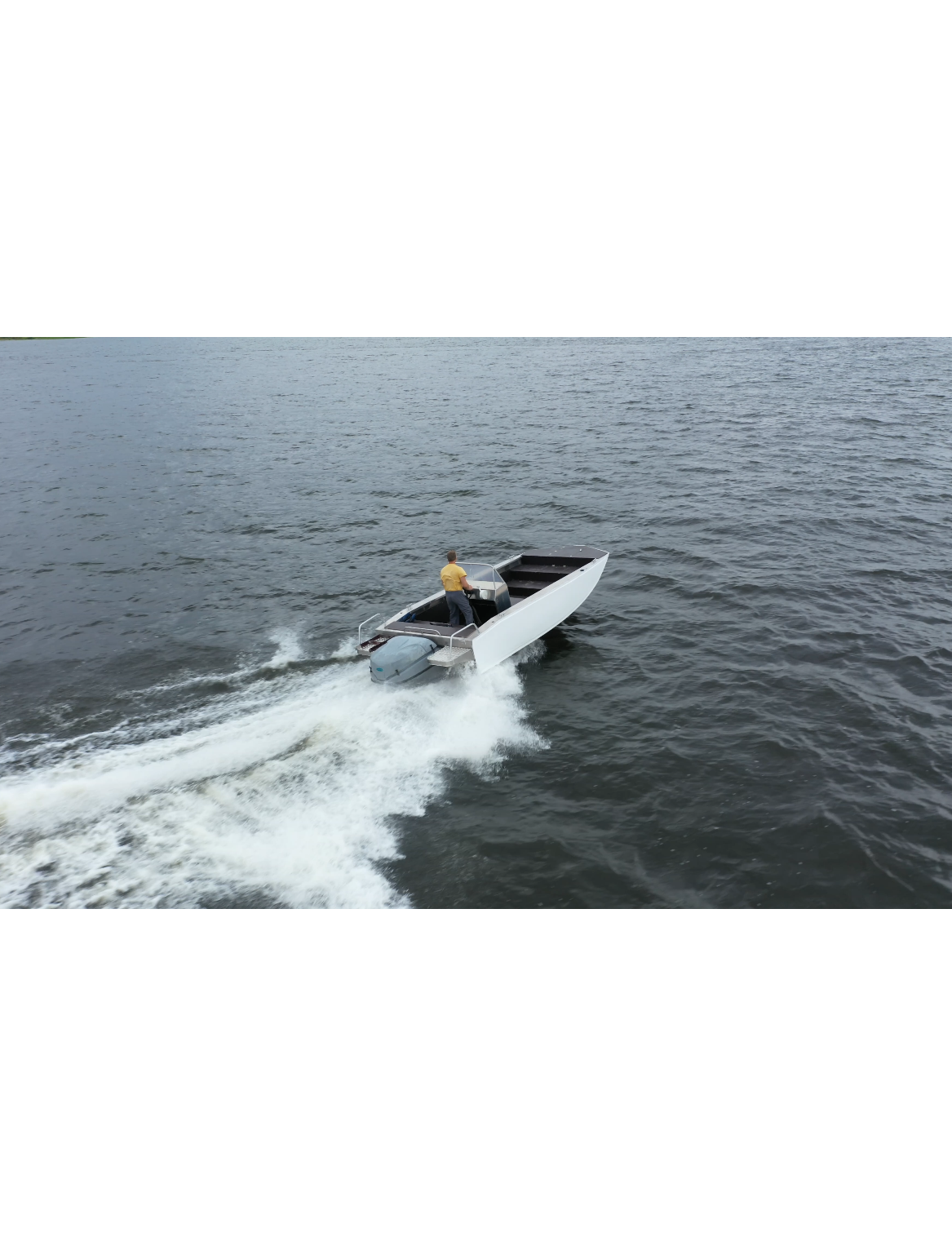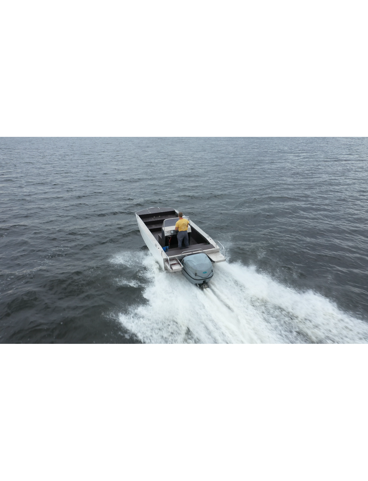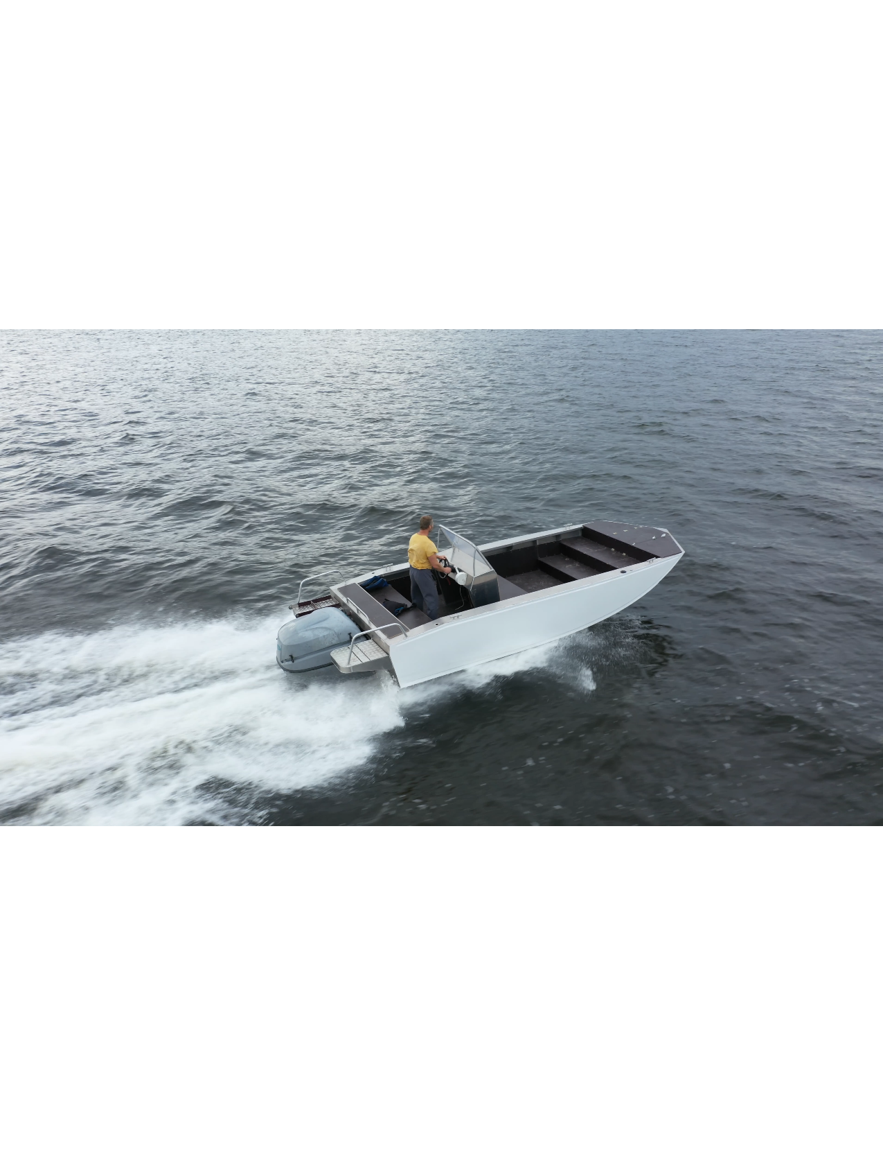 За счет установки стационарного, подвесного водомёта, рабочее пространство внутри катера использовано максимально.