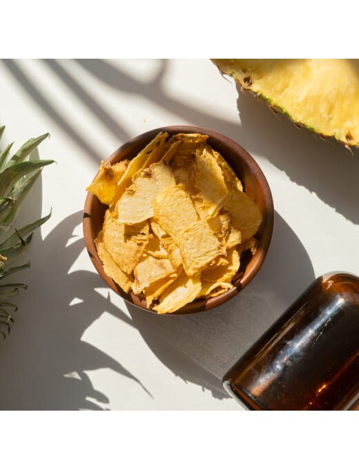 Уникальность ананаса в его способности разгонять метаболизм, способствуя быстрому сжиганию жиров. Помимо этого, ананас богат пищевыми волокнами. Натуральная клетчатка работает, как своеобразный «скраб» для кишечника, связывая и натуральным образом выводя шлаки и токсины. Входящие в состав лакомства минеральные вещества делают его эффективным средством для укрепления иммунной системы и конечно это замечательный, натуральный антидепрессант, который помогает выровнять эмоциональный фон, укрепляет стрессоустойчивость, повышает работоспособность и дает возможность легче переносить интеллектуальные нагрузки.
