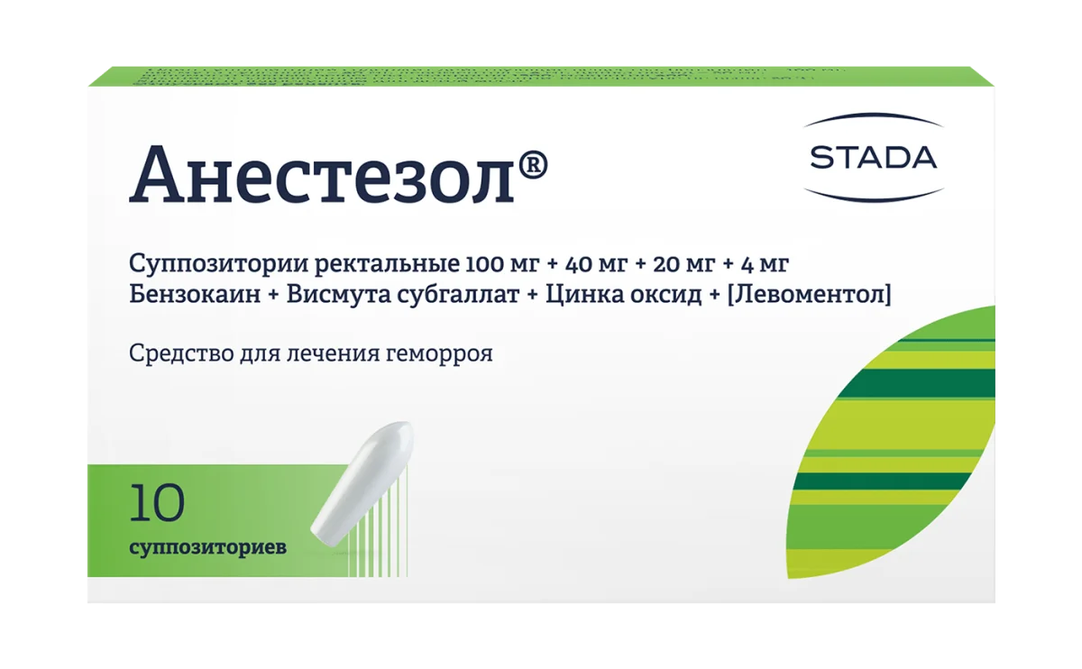 Анестезол - это комбинированный лекарственный препарат в форме ректальных суппозиториев (свечей), предназначенный для местного лечения заболеваний прямой кишки. Он оказывает выраженное обезболивающее, противовоспалительное, вяжущее и подсушивающее действие. Суппозитории торпедообразной формы желтого или зеленовато-желтого цвета. Допускается наличие на срезе воздушного стержня и воронкообразного углубления. Количество в упаковке - 10 шт.