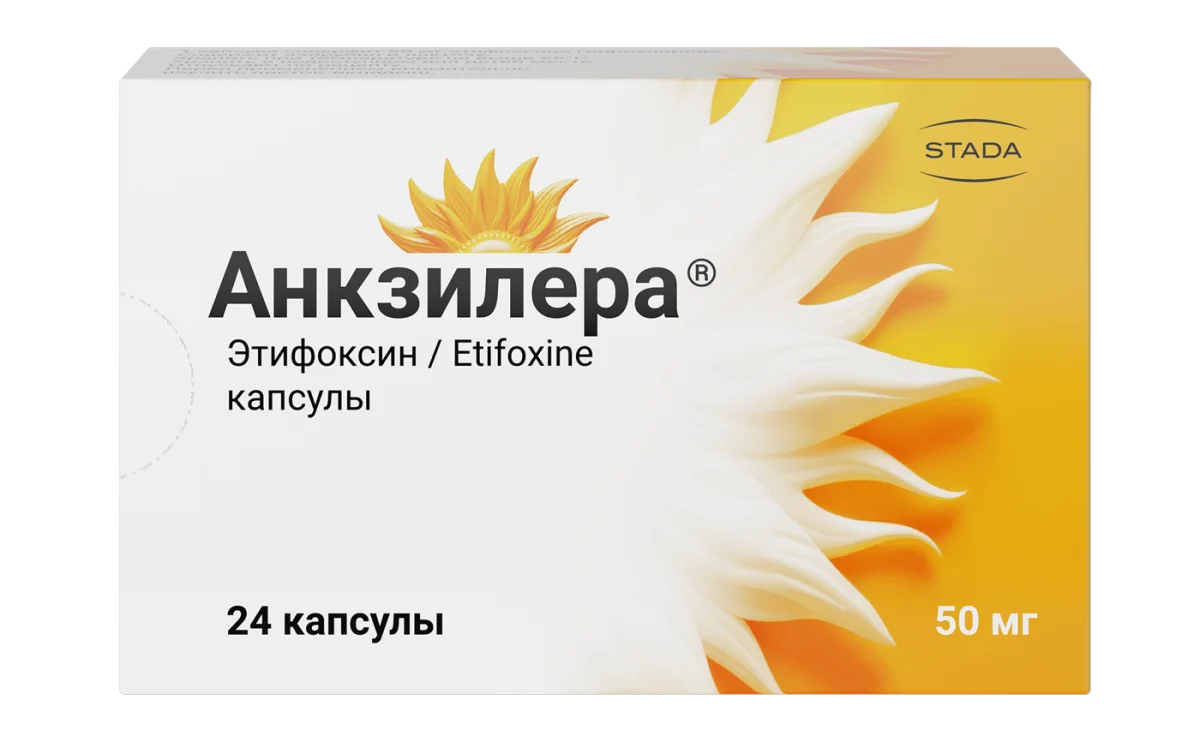 Анкзилера - это лекарственный препарат, относящийся к группе анксиолитиков (транквилизаторов), который используется для лечения тревожных состояний и психосоматических расстройств. Он содержит действующее вещество этифоксин, которое помогает устранить чувство страха, раздражительность, внутреннее напряжение и сниженное настроение, не вызывая при этом выраженной сонливости. В упаковке - 24 капсулы.