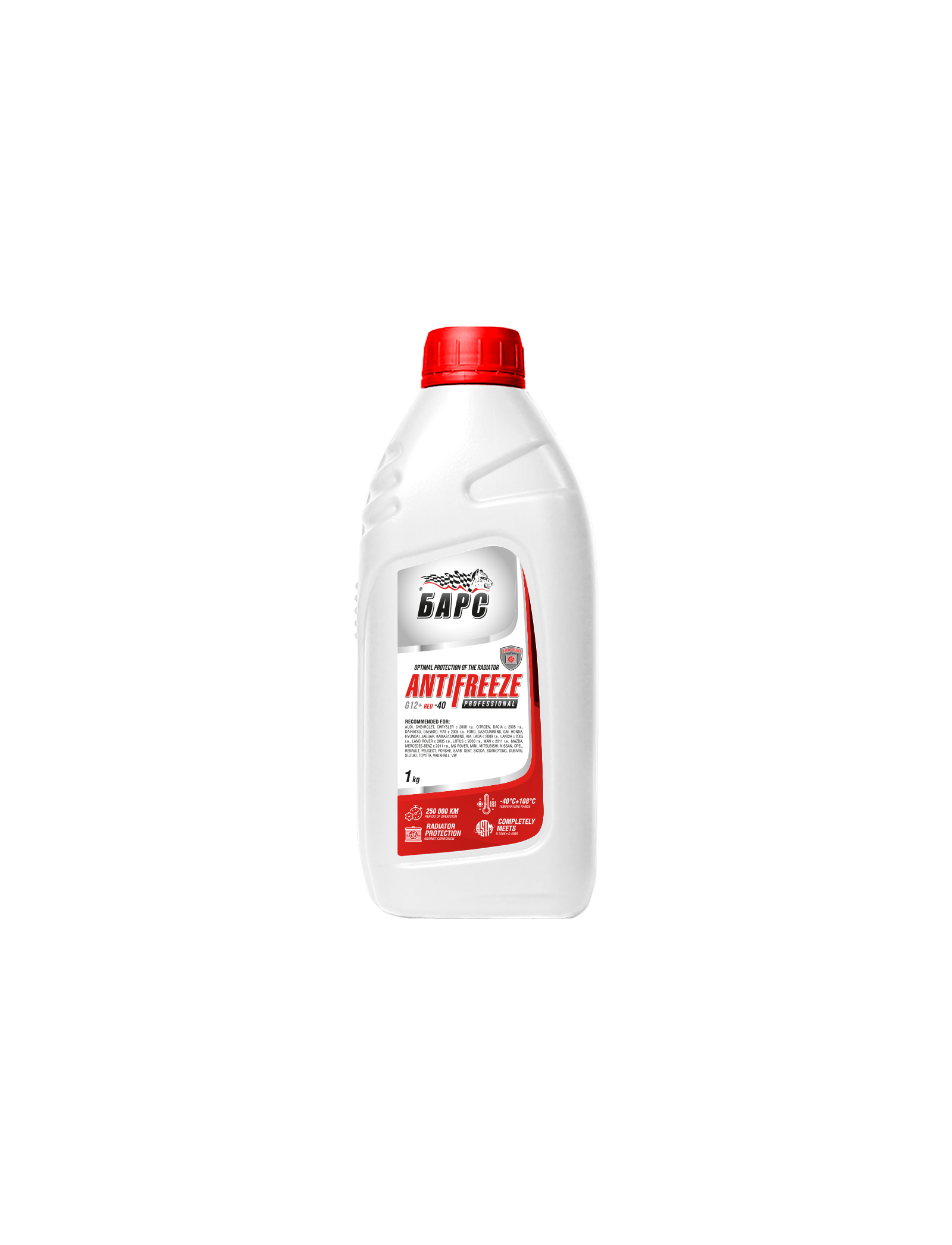 Антифриз БАРС Red G12+- это жидкость охлаждающая низкозамерзающая, предназначенная для охлаждения бензиновых и дизельных двигателей внутреннего сгорания и в качестве рабочей жидкости в теплообменных агрегатах, работающих при низких и умеренных температурах. Обеспечивает правильный тепловой режим эксплуатации двигателя, предотвращает появление коррозии и отложений в системе охлаждения. Не агрессивен к полимерным материалам и уплотнениям системы охлаждения.Рабочий диапазон температур от минус 40°С до плюс 108°С. Состав: моноэтиленгликоль, обессоленная вода, карбоксилатный пакет присадок, антикоррозийные ингибиторы и противопенные присадки. Не содержит: амины, фосфаты, силикаты, бораты.