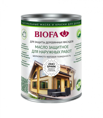 BIOFA 2043S — инновационное защитное масло премиум-класса для наружной обработки древесины. Продукт создан на основе натуральных компонентов, обеспечивающих надежную защиту деревянных поверхностей от атмосферных воздействий.