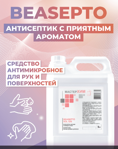 Готовый к применению спиртовой раствор — антисептик для обработки рук и поверхностей, не оказывает раздражающего действия на кожу, не содержит хлор и прочие аллергены, относится к классу малоопасных соединений. Антисептическое действие обусловлено содержанием в составе ПГМГ, усилено изопропиловым спиртом,состав активен в отношении бактерий, вирусов, грибов, защищает от их повторного появления, образуя на поверхности тонкую биоцидную пленку.