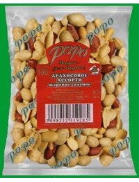 Ядра арахиса бланшированные, слабо солёные, а также арахис в хрустящей оболочке КРИ-КРИ.