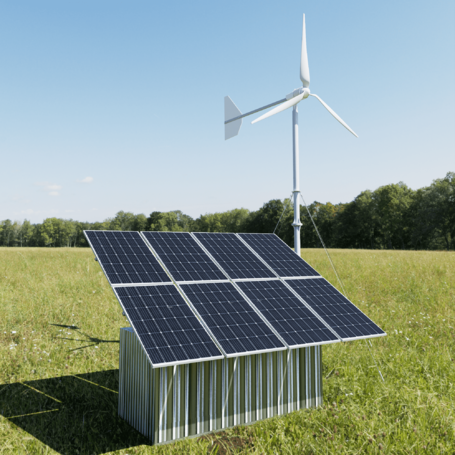 АТОН ВС-5 — это готовый комплект автономной ветро-солнечной электростанции на 4,7 кВт с аккумулятором для хранения энергии. Гибридная ветро-солнечная электростанция — одно из наиболее перспективных решений в сфере возобновляемой энергетики. Она позволяет снизить выбросы в атмосферу и обеспечивает стабильное, доступное электроснабжение. В таких станциях используются одновременно ветряные турбины и солнечные панели, что позволяет получать энергию при любых погодных условиях — как в пасмурные дни, так и при штиле. Это делает систему более универсальной и эффективной по сравнению с одноисточниковыми установками. Выбор места установки — ключевой этап, от которого зависит стабильность работы. Необходимо учитывать скорость ветра, интенсивность солнечного излучения, особенности рельефа и наличие объектов, создающих тень. Также важна близость к энергосети и транспортной инфраструктуре. Автономная ветро-солнечная электростанция это: Бесплатное электричество Надежность Фиксированная цена вырабатываемой электроэнергии на много лет вперед Долговечность Отсутствие запаха Отсутствие ежедневного обслуживания Одним из главных преимуществ гибридных станций является то, что они могут работать круглосуточно без перебоев. В течение дня солнце обеспечивает высокую производительность, а ночью минимальную. Напротив, ветровые условия менее предсказуемы: иногда они бывают очень сильными или, наоборот, почти отсутствуют. Это означает, что гибридные электростанции могут компенсировать друг друга и обеспечивать стабильное производство энергии.