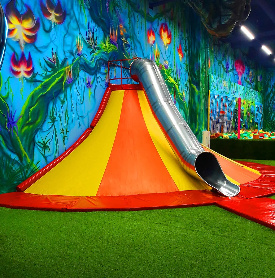 Аттракцион Вулкан изготовлен из нетоксичных, прочных и износостойких материалов. Состоит из металлоконструкции, полотна ПВХ, защитных матов, зацепов. На верху конструкции расположена опорная площадка. Аттракцион объединяет в себе широкие возможности для развлечений. Его высота в среднем составляет 3 метра (есть варианты меньшей и большей высоты), склон выполнен в виде натянутого полотна из высокопрочного ПВХ. Горка Вулкан, предназначена для любителей вскарабкаться на и стремительно спуститься с ее вершины. Также можно установить скат-трубу (открытого или закрытого типа). Для подъема на вершину дополнительно можно устанавливать канаты и капролоновые зацепы, которые превратят аттракцион еще и в Скалодром. Размеры стандартного аттракциона: высота до площадки - 2900 мм., высота ограждения площадки - 800 мм., радиус по полотну - 4500 мм., радиус с напольными матами - 5500 мм.