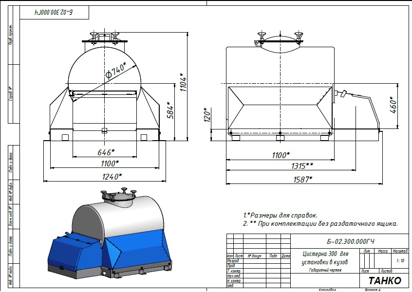 Автоцистерны для пищевых жидкостей устанавливаемые в кузов автомобиля , используются дя следующих типов транспортного средства: легковой пикап (например, ВИС), грузовой автомобиль или бортовой прицеп. Имеет следующие характеристики: вместимость полезная номинальная - 300, 450, 700 или 1150 литров, количество отсеков цистерны, шт. - один, материал сосуда и трубопроводов - пищевая коррозионностойкая сталь, внешнее исполнение обшивки цистерны - окрашенный или нержавеющий лист; наполнение цистерны - через горловину, крышка заливной горловины оснащена дыхательным устройством, разгрузка (слив) происходит через арматуру или сливной шланг.