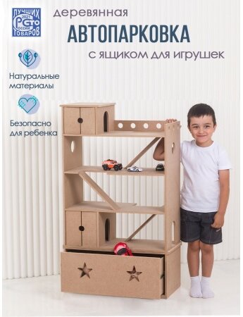 Машинка - это самая любимая игрушка для любого мальчишки, поэтому большая и многофункциональная автопарковка вызовет восторг у юного автолюбителя. С таким игровым набором ребенок будет применять фантазию и воображение, придумывая различные вариации игр. А просторный и удобный ящик поможет мальчику организовать порядок среди автотранспорта. Для игр с данной парковкой отлично подойдут машинки фирм: Hot Wheels, UralToys. А также любимые герои мальчишек: вспыш, синий трактор, щенячий патруль. Парковка сделана из МДФ 10 мм, материал ровный, идеально гладкий. Модель без окрашивания можно покрасить в любимый цвет ребенка или в подходящий под интерьер цвет. Размеры парковки с ящиком: глубина 30 см, ширина 61 см, высота 110 см. Автопарковка от компании "PeMa kids" - это и качественная функциональная вещь, сочетающая в себе развивающую игрушку, украшение интерьера, место для хранения и искренний детский восторг!