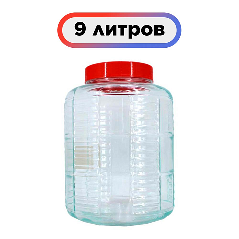Стеклянная банка объемом 9 литров с гидрозатвором — это надежное решение для домашнего ферментации и хранения напитков. Изготовленная из прочного стекла, она обеспечивает герметичность и долговечность. Гидрозатвор позволяет контролировать процесс брожения, предотвращая попадание воздуха и загрязнений, что способствует получению качественного продукта, например, вин, кваса или других ферментированных напитков.