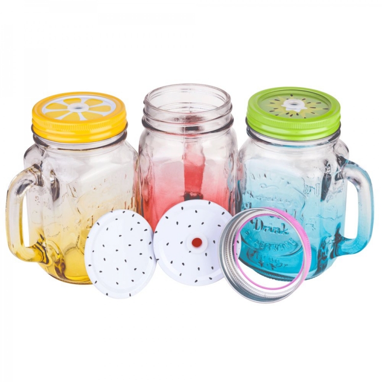 Объём банки составляет 450 мл. Она идеальна для освежающих напитков: коктейлей, смузи, соков, а также домашних компотов и лимонадов. Приятная форма с массивной ручкой и широким горлышком делают её по-настоящему удобной.