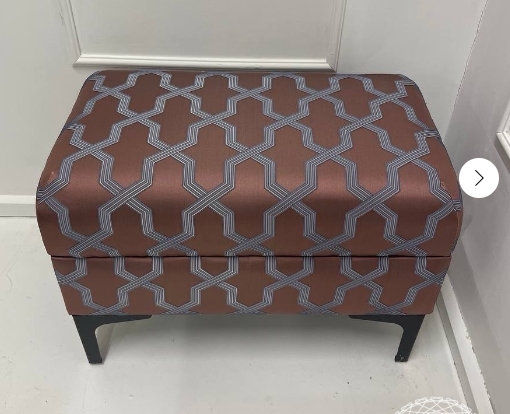 Банкетка с ящиком в стиле Арт-декор Обивка выполнена из жаккарда медного цвета с геометрическим рисунком. Опоры из металла с черным матовым покрытием Высота опор: 150 Материалы: жаккард, мдф, мебельный щит, поролон, металл Цвет: Коричневый Ящик для хранения: да ДxШxВ: 600x350x420 мм