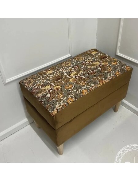 Банкетка с ящиком с обивкой из гобелена с принтом по мотивам работ Уильяма Морриса. Опоры выполнены из массива. Возможно изготовление в другом размере. Высота опор: 150 Цвет: Коричневый Ящик для хранения: да ДxШxВ: 600x350x420 мм