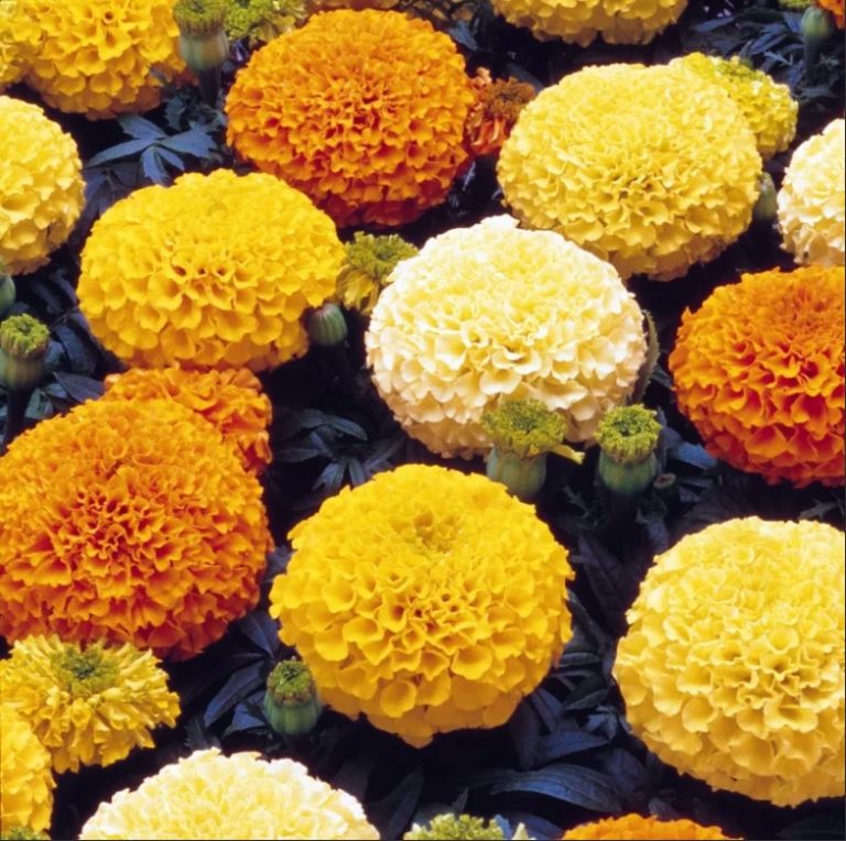 Бархатцы Антигуа F1 Микс 5шт куст компактный, высотой 20-30 см, крепкий, с большим количеством ветвлений. Соцветия густомахровые, шаровидные, крупные. Окраска разнообразная – от светло-желтого до насыщенного оранжевого. Диаметр соцветий достигает 8-10 см. Не прихотливы в уходе, предпочитают солнечные места. Цветение продолжительное. Идеально сочетаются с любыми цветами, позволяют создать плотные насаждения. Подходят для бордюров, групповых посадок и в качестве контейнерной культуры.