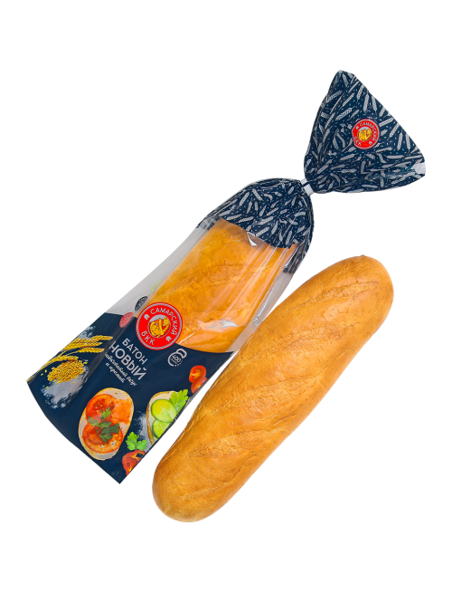 Батон из пшеничной муки высшего сорта удлиненной формы.