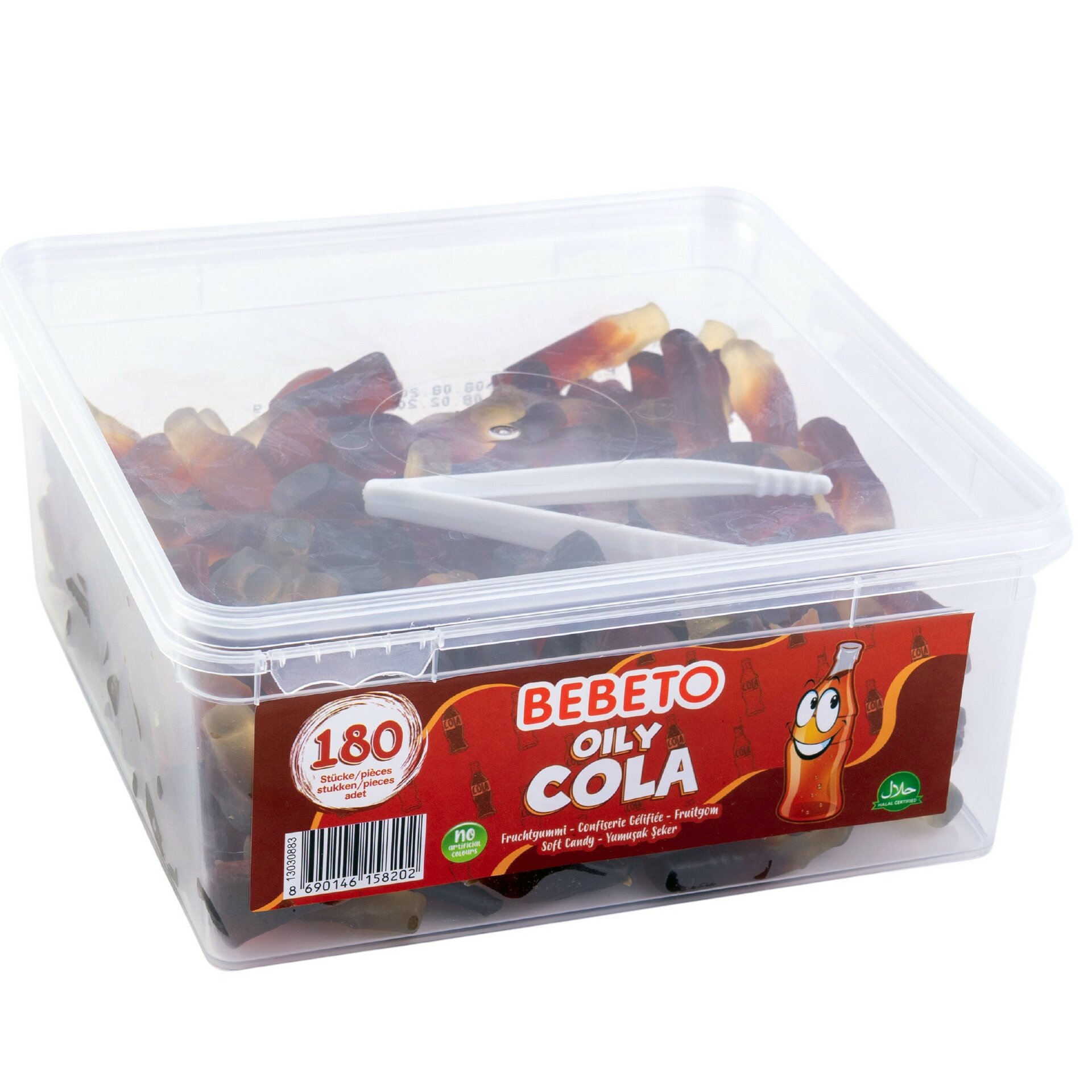 Жевательный мармелад со вкусом колы в виде маленьких бутылочек. Удобный пластиковый бокс оснащен плотно закрывающейся крышкой, предотвращающей высыхание продукта, а также щипцами.