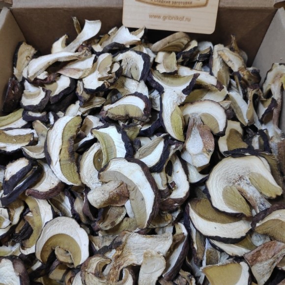 Белые шляпки и ножки 1кг , в которых содержится рибофлавин – вещества, отвечающего за здоровье и рост ногтей, волос, кожи и за здоровье организма в целом. Особенно важен рибофлавин для поддержания в нормальном состоянии функции щитовидной железы. Белый гриб используют как лекарственное средство при туберкулезе, упадке сил, для улучшения обмена веществ. В сушёных белых грибах присутствует алкалоид герцедин, используемый при лечении стенокардии. Водными экстрактами из белых грибов лечат язвы, обморожения. Белые грибы содержат витамины А (в виде каротина), B1, C и особенно много витамина D. К тому же, белый гриб содержит много полезных веществ, некоторые из них обладают противоопухолевыми свойствами. Сушёные белые грибы успешно используются для профилактики рака.