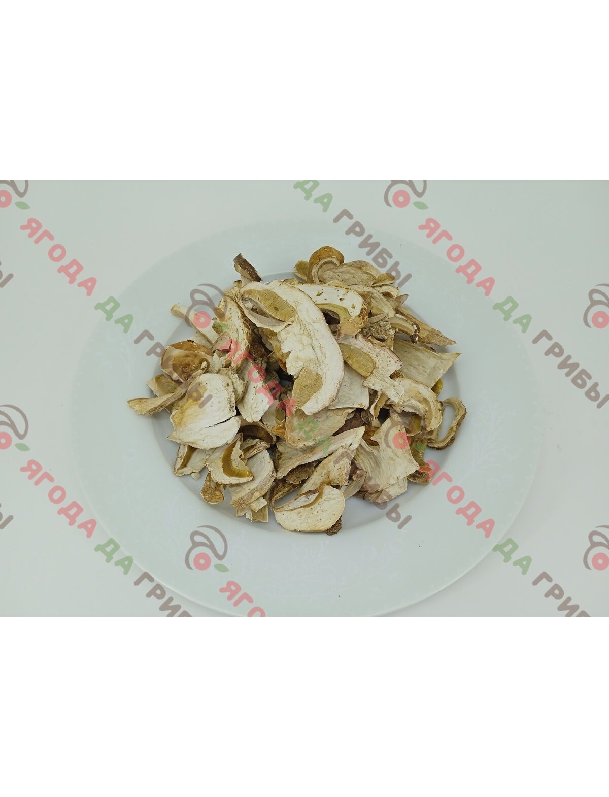 Белый гриб сушеный 100 гр подходит для вегетарианской и постной диеты, богат витаминами и минералами. Произведён без ГМО. Заготавливают путём сушки плодовых тел белого гриба. В отличие от других видов грибов, белый гриб не меняет цвет мякоти при термической обработке. Сушёные белые грибы источник белка, витаминов и микроэлементов. Некоторые полезные вещества: рибофлавин — вещество, отвечающее за здоровье и рост ногтей, волос, кожи, работу щитовидной железы, витамины A (в виде каротина), B1, C и особенно много витамина D, минералы: калий, фосфор, магний, цинк.