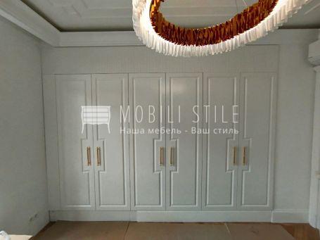 Шкаф для спальни с фрезерованным фризом. Материалы: Фасады и фриз: плита МДФ 22 мм, окрашивание матовой эмалью в цвет RAL9003 белый. На лицевой поверхности фасадов выполнена фрезеровка рамочкой «Каролина». На поверхности фриза выполнена фрезеровка «прямая волна» с шагом 10 мм «Риф 10» Тыльная сторона элементов – белая ламинация. Корпус - ЛДСП 16 мм Белый классический W960 ST7. Кромление кромкой ПВХ 1 мм Задние стенки шкафа – ХДФ в белом цвете с ребрами жетскости (усилителями) из ЛДСП 16 мм. Фасады установлены на петли с доводчиками, открываются ручками. Ручкиарт BU 005.224.19 Ручка скоба классика, глянцевое золото 224 мм. Наполнение: полочки, прямоугольное вешало Voque в серебрянном цвете, ящики. Ящики установлены на направляющие Блюм полного выдвижения, скрытого монтажа, с доводчиками. Производитель петель – Блюм. Конфигурация изделий согласно эскизов технолога. Дополнительные комплектующие: навесной на дверь держатель для ремней – 2 шт (вешалка для ремней и галстуков GTV+ держатель скоба вешалка для галстуков, шарфов, хром, WENKO) Размеры: Ширина, см 356 Высота, см 216 Глубина, см 62