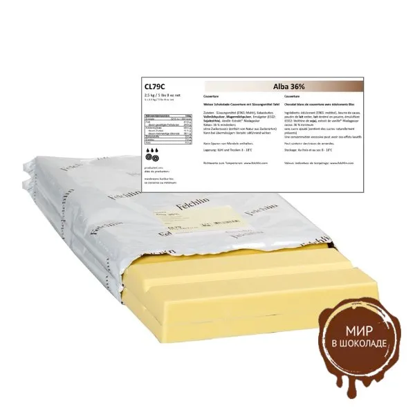 Белый шоколад Alba 36% без добавления сахара, блок, 2,5 кг.