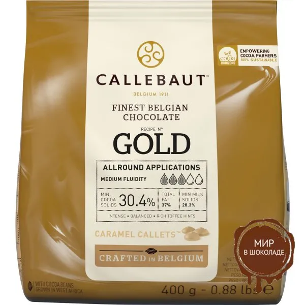 Белый шоколад GOLD с карамелью 30,4% галеты, Callebaut, 0,4 кг.