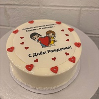 Муссовый бенто на основе белого бельгийского шоколада добавлением натурального пюре манго и маракуйи/клубники-малины c изображением на сахарной бумаге. В подарочной упаковке.
