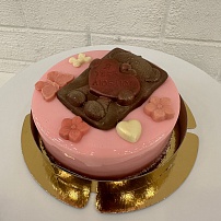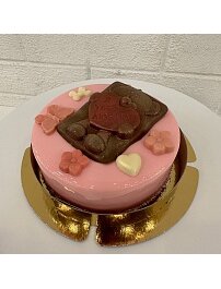 Бенто тортик муссовый на основе бельгийского шоколада с добавлением натурального пюре клубники и малины. В подарочной коробке.