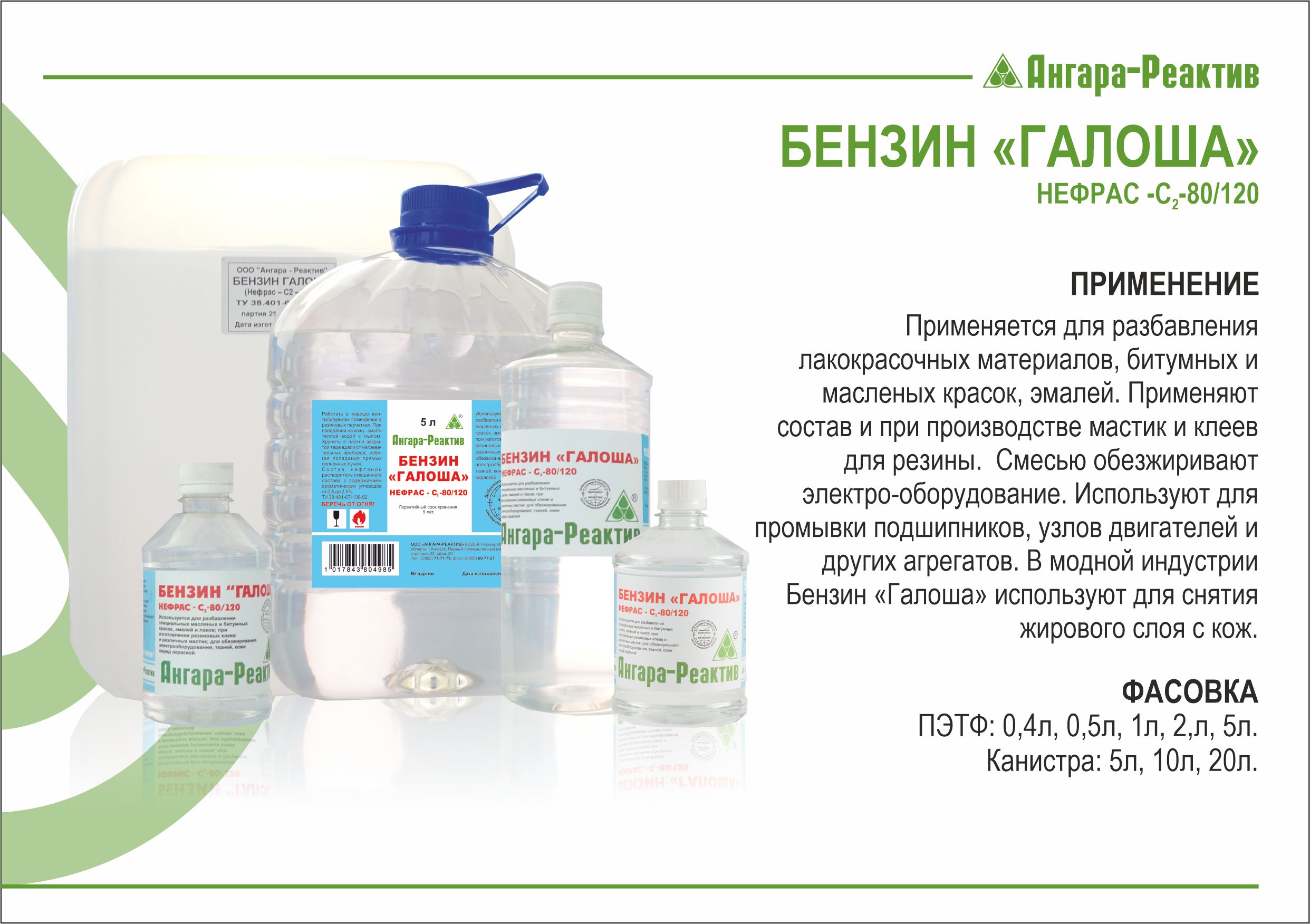 Бензин “Галоша” - это специальный вид бензина, который используется для растворения различных видов красок и лаков. Он также может использоваться для чистки поверхностей от жирных пятен и других загрязнений. Бензин “Галоша” имеет низкую температуру кипения, что позволяет ему быстро испаряться и не оставлять следов на поверхности.