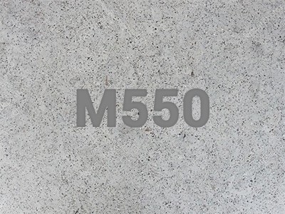 Бетон марки М550 (Класс В40) производится только на гранитном щебне, с добавлением специальных добавок и пластификаторов — в своем составе имеет большой процент цемента, отличается высокой прочностью, используется в ЖБИ конструкциях специального назначения, гидротехническом строительстве. Для возведения зданий, как правило, не применяется.