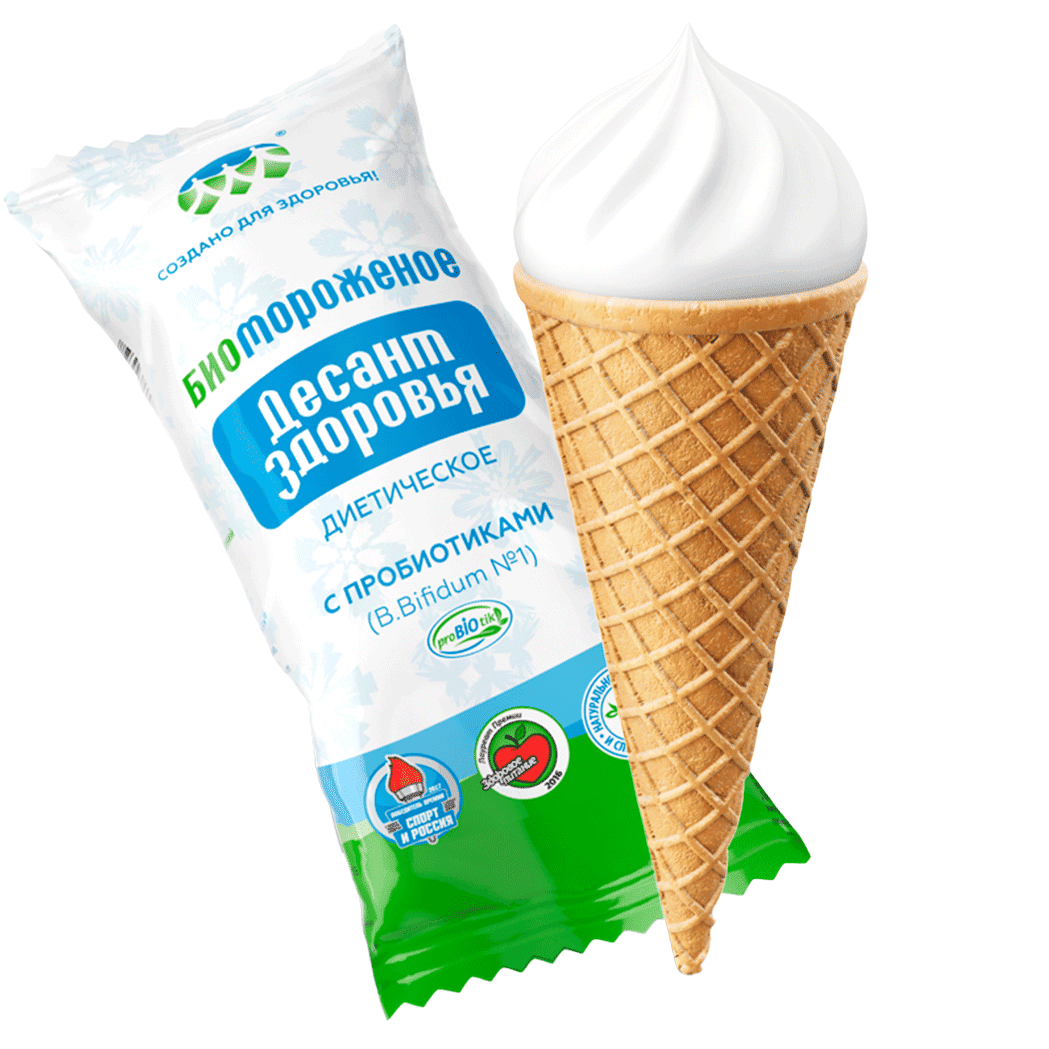 Мороженое содержит пробиотики (биомасса Bifidobacterium). Наше ноу-хау — внесение пробиотиков в «особом состоянии», что повышает их эффективность. Вкусно и полезно!