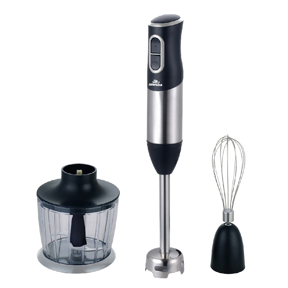 Технические характеристики: Тип: блендерный набор 2 скорости Комплектация: Блендер; венчик, чаша измельчитель (объем 600мл) Мощность: 1200 Вт Материал корпуса: пластик, нжс Материал погружной части: металл Ножи: нержавеющая сталь Мотор: DC (постоянный ток) Напряжение: 220-240 V, 50 Гц