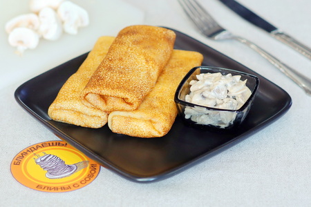 БЛИН С НАЧИНКОЙ ГРИБЫ В СЛИВКАХ