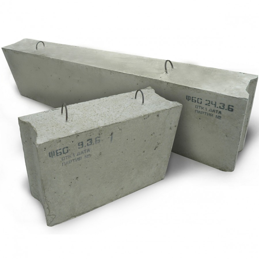 Фундаментный блок сплошной, сокращенно ФБС — это прямоугольный блок, изготовленный из бетона. В верхней части изделия предусмотрены металлические монтажные петли. Потайные монтажные петли обеспечивают безопасность и удобство всех манипуляций с изделиями. Они не подвергаются воздействиям при складировании и погрузке и не сломаются при перемещении ФБС. Фундаментные блоки производятся по ГОСТу 13579-2018. Блоки бетонные для стен подвалов. Изделие маркируется на боковой стороне, цифры обозначают размеры блока ФБС - длину, ширину и высоту.