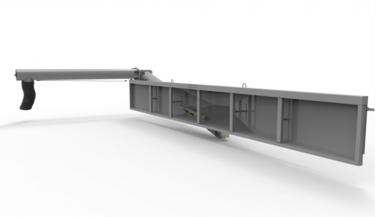 В конструкции загрузчика использован гидропривод загрузочного шнекового транспортёра. Шнек загрузчика имеет 2 положения – рабочее и транспортное.