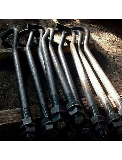 Отличительная особенность метиза — наличие специального наконечника для размещения закладной детали в бетонном основании. Вторая сторона имеет наружную резьбу, про помощи которой осуществляется крепеж. Короткий конец загнут под прямым углом (90°). Теоретическая масса болта фундаментного анкерного тип 1.1 с резьбой M24 при длине 1000 мм составляет 4,13 кг.