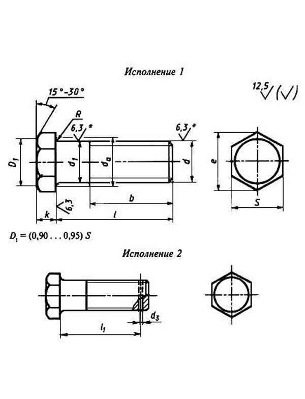 Болты общего назначения с шестигранной уменьшенной головкой и классов точности А и В с диаметром резьбы свыше 48 мм.