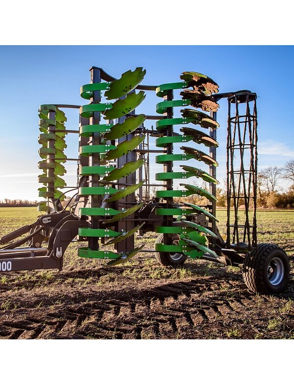 Борона Carbon D5000 предназначена для поверхностной стерневой обработки на лёгких и средних почвах, так и для предпосевной обработки почвы для посева по мульче или после вспашки. Может работать по влажной почве не забиваясь, идеально копирует практически любой рельеф почвы, за счет пружинной стоки, выдерживает заданную глубину по всей ширине захвата, работает на глубину от 3 см до 15 см. Carbon D4000 обеспечивает качественные показатели при соблюдении условий эксплуатации: уклон поля должен быть не более 8,5°, влажность почвы не более 30%, твёрдость почвы до 3,5 МПа в горизонтах от 0 до 15 см., необходимое давление в гидросистеме трактора до 20 МПа (200 атм.), в гидросистеме бороны не допускается наличие воздуха, в обрабатываемом слое почвы не должно быть камней и больших скоплений пожнивных остатков. Carbon D4000 состоит из рамной конструкции: сницы, комплектов гидроцилиндров, транспортной тележки, не складываемой рабочей плоскости, на несущих брусьях которой в два ряда установлены рабочие органы на пружинных S-образных проворотных стойках - 90*14 см, вслед за рабочими органами располагаются катки (одинарные или двух рядные), которые выполняют функцию прикатывания почвы и дробления комьев. Рама выполнена из бруса и листового металла и имеет толщину от 7 мм до 20 мм.