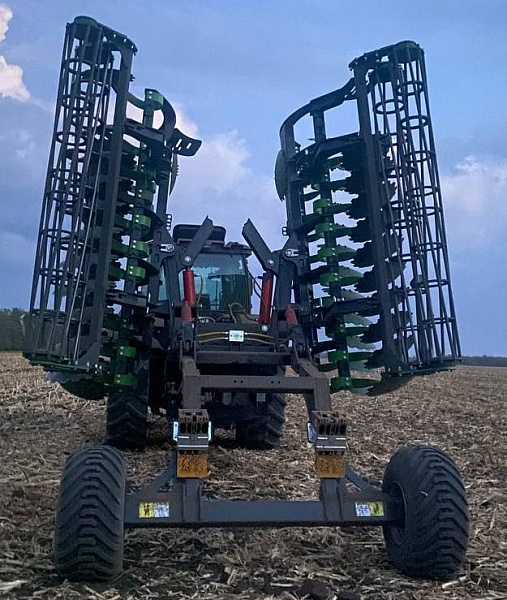Борона Carbon D6000 предназначена для поверхностной стерневой обработки на лёгких и средних почвах, так и для предпосевной обработки почвы для посева по мульче или после вспашки. Может работать по влажной почве не забиваясь, идеально копирует практически любой рельеф почвы, за счет пружинной стоки, выдерживает заданную глубину по всей ширине захвата, работает на глубину от 3 см до 15 см. Carbon D4000 обеспечивает качественные показатели при соблюдении условий эксплуатации: уклон поля должен быть не более 8,5°, влажность почвы не более 30%, твёрдость почвы до 3,5 МПа в горизонтах от 0 до 15 см., необходимое давление в гидросистеме трактора до 20 МПа (200 атм.), в гидросистеме бороны не допускается наличие воздуха, в обрабатываемом слое почвы не должно быть камней и больших скоплений пожнивных остатков. Carbon D4000 состоит из рамной конструкции: сницы, комплектов гидроцилиндров, транспортной тележки, не складываемой рабочей плоскости, на несущих брусьях которой в два ряда установлены рабочие органы на пружинных S-образных проворотных стойках - 90*14 см, вслед за рабочими органами располагаются катки (одинарные или двух рядные), которые выполняют функцию прикатывания почвы и дробления комьев. Рама выполнена из бруса и листового металла и имеет толщину от 7 мм до 20 мм.