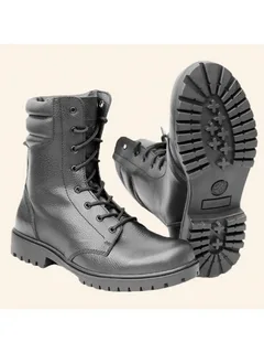 Ботинки с высоким берцем ОМОН чёрные, подходят для силовых структур, активного отдыха, охоты, повседневной носки. Высокие берцы (24 см) изготовлены из натуральной хромовой кожи толщиной 1,6 мм. Есть гибкая подошва из термоластопласта, крупный рельефный протектор и утеплитель из натуральной овчины. Подносок и задник ботинка для сохранения формы усилены термопластическим материалом. Система шнуровки позволяет быстро снимать и надевать ботинки, не вынимая шнурки из петель. Глухой клапан препятствует попаданию внутрь ботинка грязи, снега, песка и других посторонних предметов.